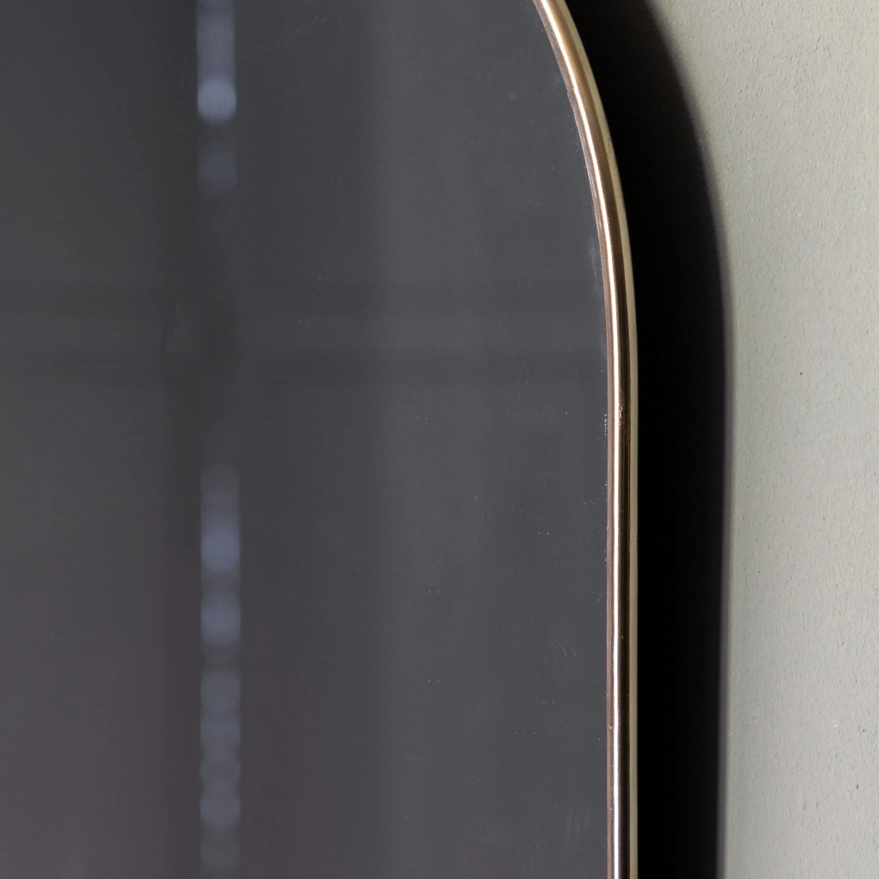 This mirror offers a sophisticated touch to your bedroom or hallway with its sleek, modern design. Featuring a minimalist oval shape and ultra-thin dark brass edging, it effortlessly blends with various interior styles, adding a refined and contemporary vibe to any space. This mirror is designed for those who appreciate both style and function.