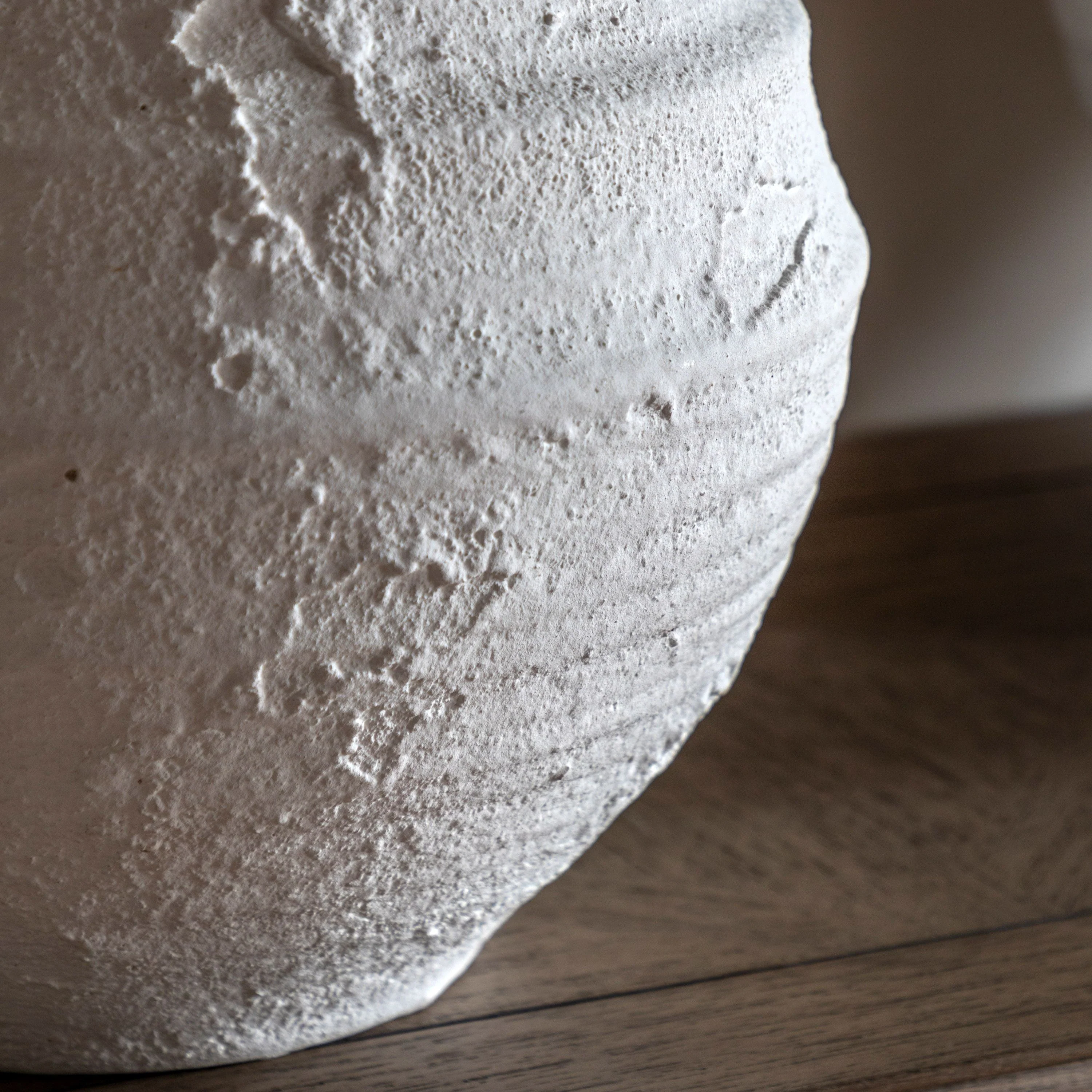 Bring a touch of antiquity to an interior with the rustic vase. In cement style ceramic, finished in a natural colour, this vase stands out as part of a display of faux stems or simply on its own.